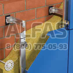 На вертикальные бортики кассет устанавливаются икли, которые заводятся в салазки, установленные на вертикальные несущие направляющие. Крепление кассет производится с учетом температурных расширений элементов подсистемы.