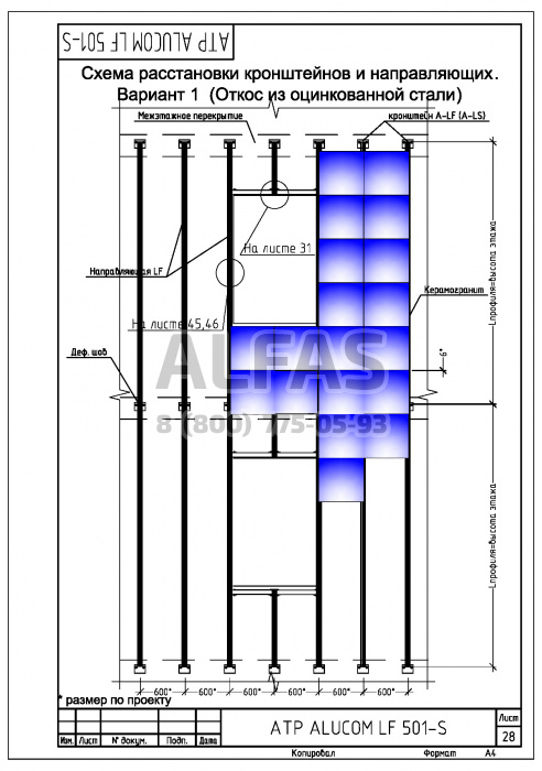 Alucom LF 501-S – алюминиевая подоблицовочная конструкция, с креплением только в межэтажные перекрытия.
