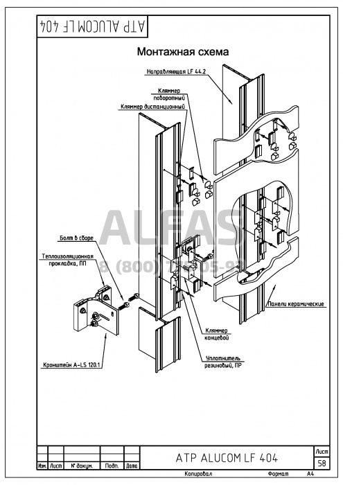 Alucom LF 404 можно использовать как в варианте с резиновыми уплотнителями, так и без них. Кляммеры могут, по желанию Заказчика, окрашиваться в цвет материала облицовки.