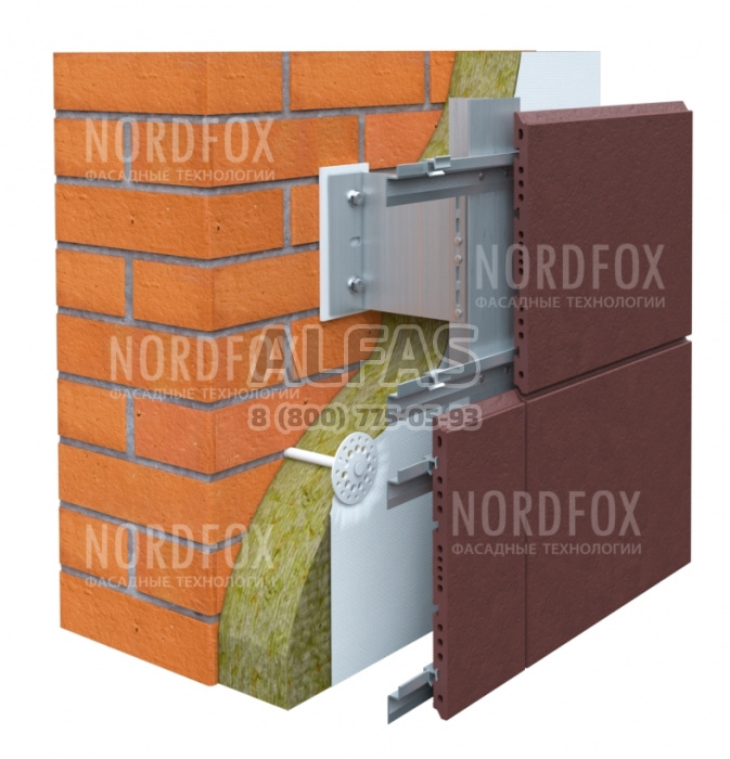 Фасадная система NordFox MTC-v-350 (Горизонтальное) под Терракотовые панели и объёмная керамика
