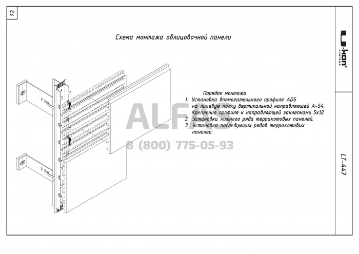 Фасадная система U-kon LT-447 Вариант 2 под Терракотовые панели и объёмная керамика